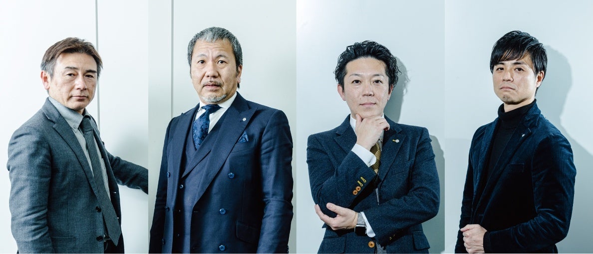 ▲左から:執行役員 大塚、 代表取締役副社長 田代、 執行役員 井上、 執行役員 鴨木