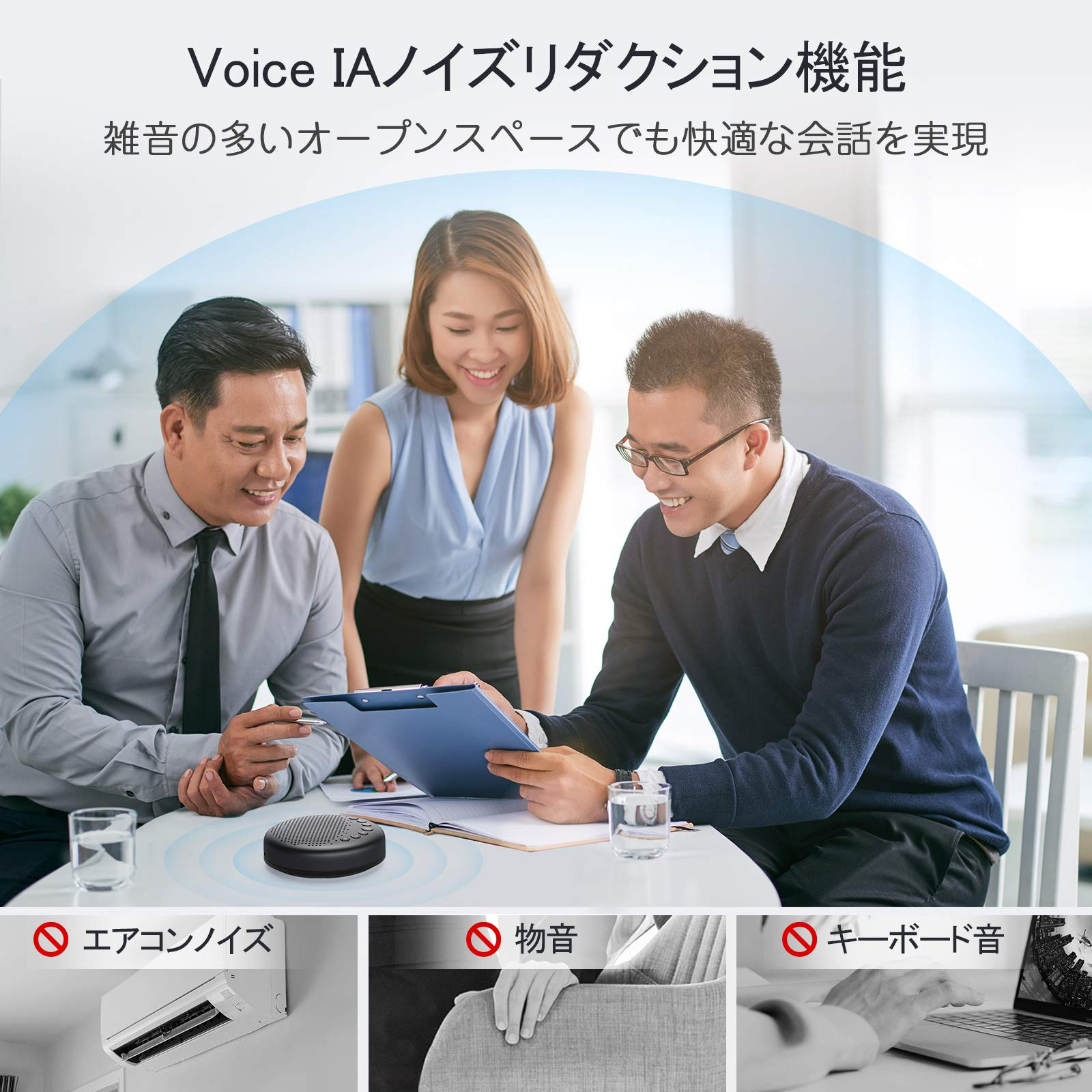 本体には計3基のマイクを内蔵しており、360度全方位からの集音に対応。eMeet社の独自技術である "Voice IAノイズリダクション" 機能のおかげで、周囲の雑音をシャットアウトして、ヒトの声のみを明瞭に拾い上げることが出来ます。