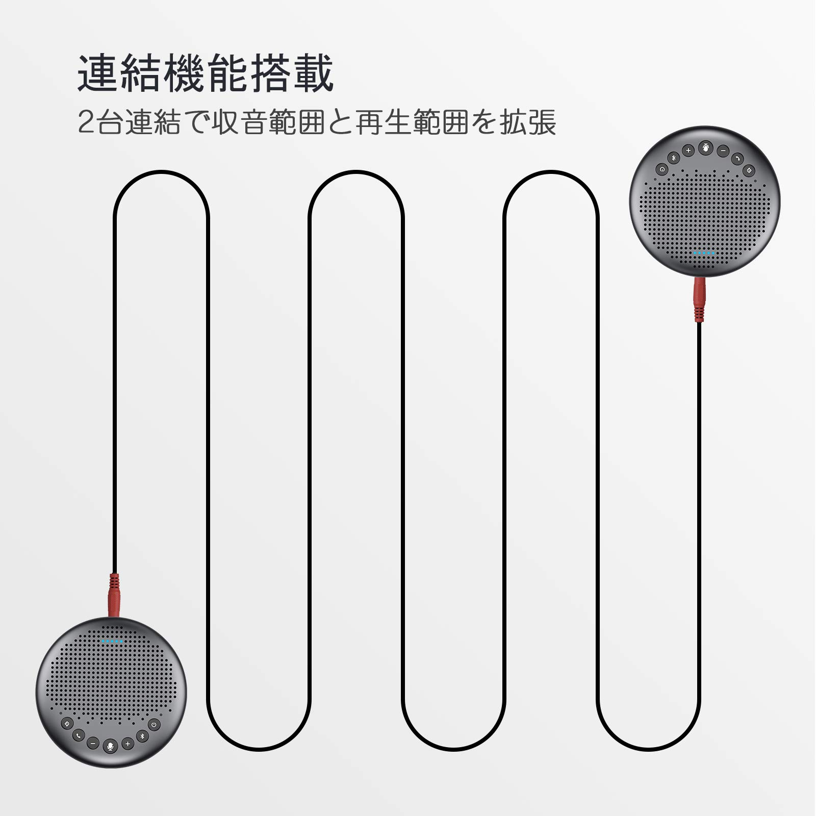 1台で5~8人に対応できますが、オプションの連結ケーブルを使い、もう1台Lunaスピーカーフォンとの連結ができ、収音範囲および再生範囲を拡張します。