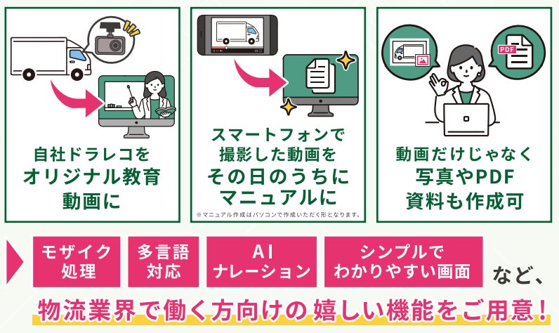 また、本展示会では新機能である、ロジポケマニュアル管理(教育マニュアル動画作成・管理ツール)についてもご紹介します。