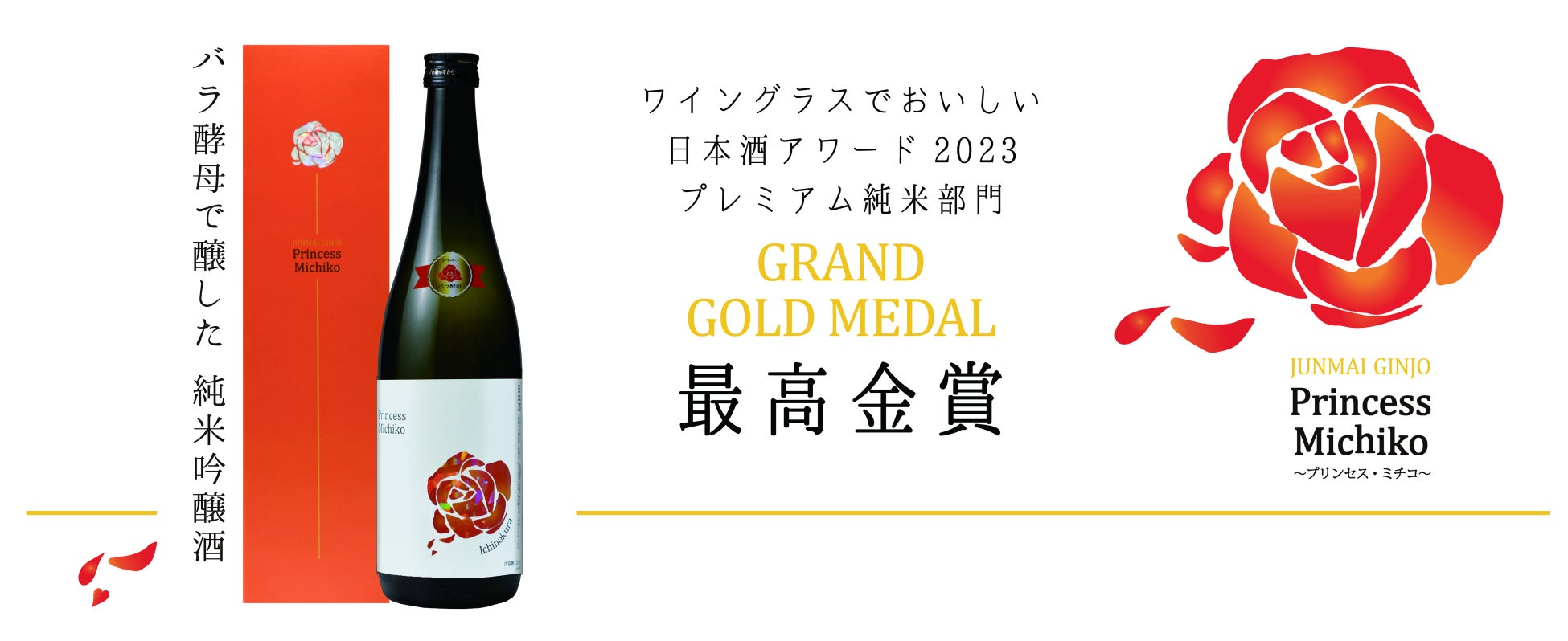 上皇后陛下が皇太子妃時代に献呈されたバラ「プリンセス・ミチコ」から分離した花酵母。「東京農業大学バラ酵母 PM-1」を用いて醸した純米吟醸酒。