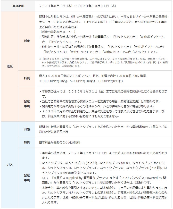 関西電力では、電気とガスのキャンペーンを実施しています。
