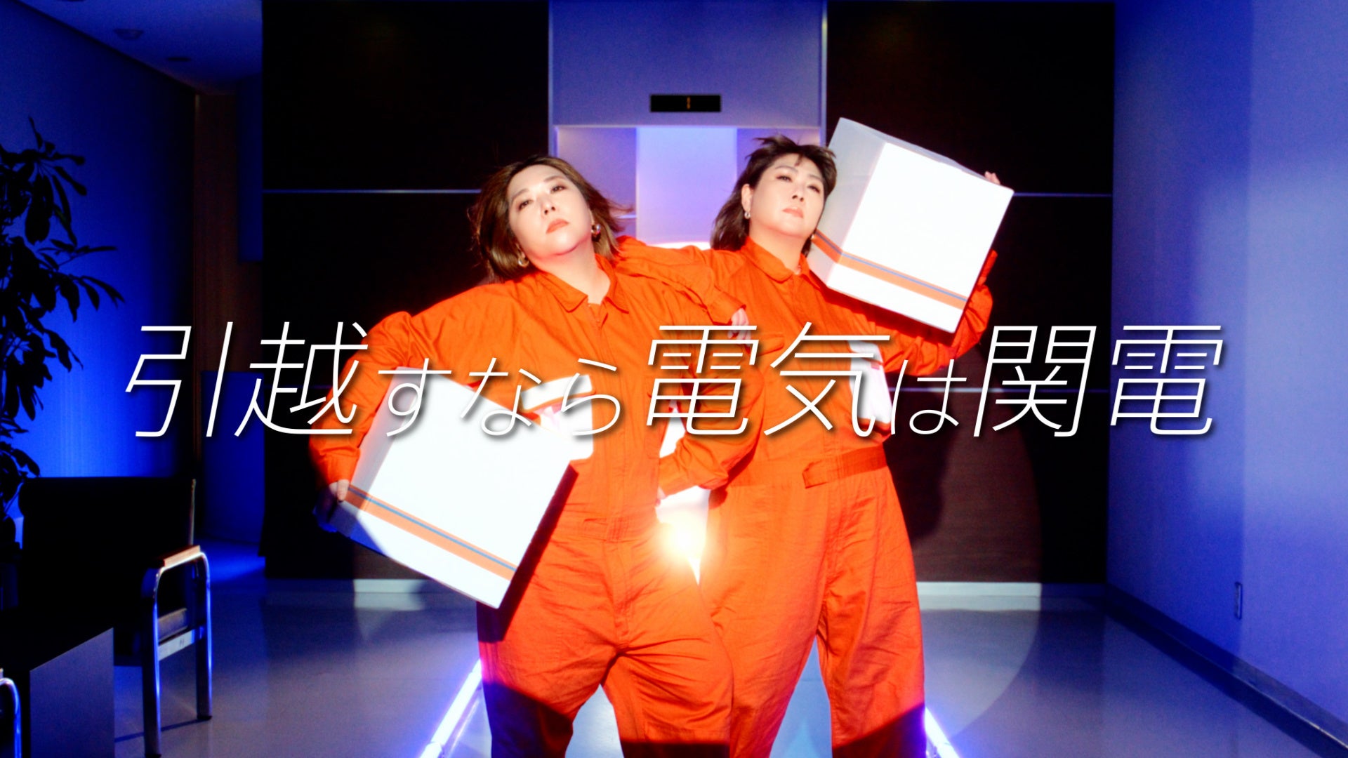 もう1種類のCMは、今まさに引越そうとしている女性のマンションが舞台。引越し作業員姿のやすよさん、ともこさんが、荷物を運びながら「引越すなら、電気は関電」を合言葉に、関西電力の電気をPRします。引越し用のありふれたブルーシートを優雅にかっこよく歩く姿は、まるでファッションショーのモデルのよう。ポーズもバッチリ決めるお二人と、あきれ顔でツッコむ依頼主との対比が際立つCMです。