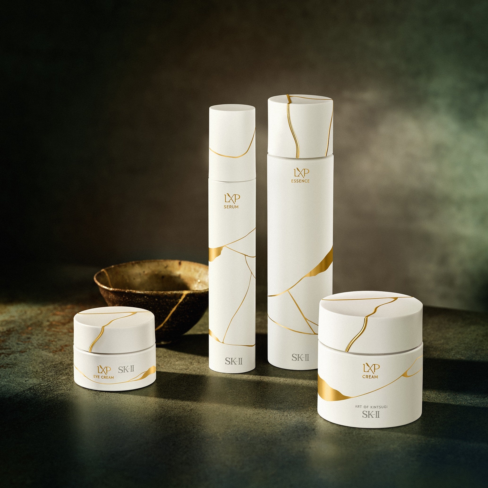 SK-IIは、これまで「肌にとって敵」と思われがちであった「時」に着目しました。「重ねる時を味方につけ、停滞を打破するような右肩上がりのスキンケアはないものだろうか。」という問いの中〝時” を重んじる陶磁器の伝統的な修復技法 “金継ぎ”に着目。“金継ぎ”は単なる修復技術ではなく、欠けたり割れたりした陶磁器を漆で結びつけ、金をあしらって修復することで新たな美しさへと価値を見出す匠の技。SK-IIはこの“金継ぎ”の哲学をスキンケアに置き換え、時を経て大切に育まれた肌に、新しい美しさを創造する 「SK-II LXP 金継ぎ」が誕生しました。「SK-II LXP 金継ぎ」シリーズの核となるのは、SK-II独自の天然由来成分ピテラ™*¹を、限界まで濃縮した“超濃縮ピテラ™*¹”と、ゴールドシルクセリシン*²。“SK-II LXP 金継ぎ”は、「美の結合力*³」を高め、弾むようなハリ、輝き…時がたつほど*⁴に、全方位に異次元の美しさへと導きます。