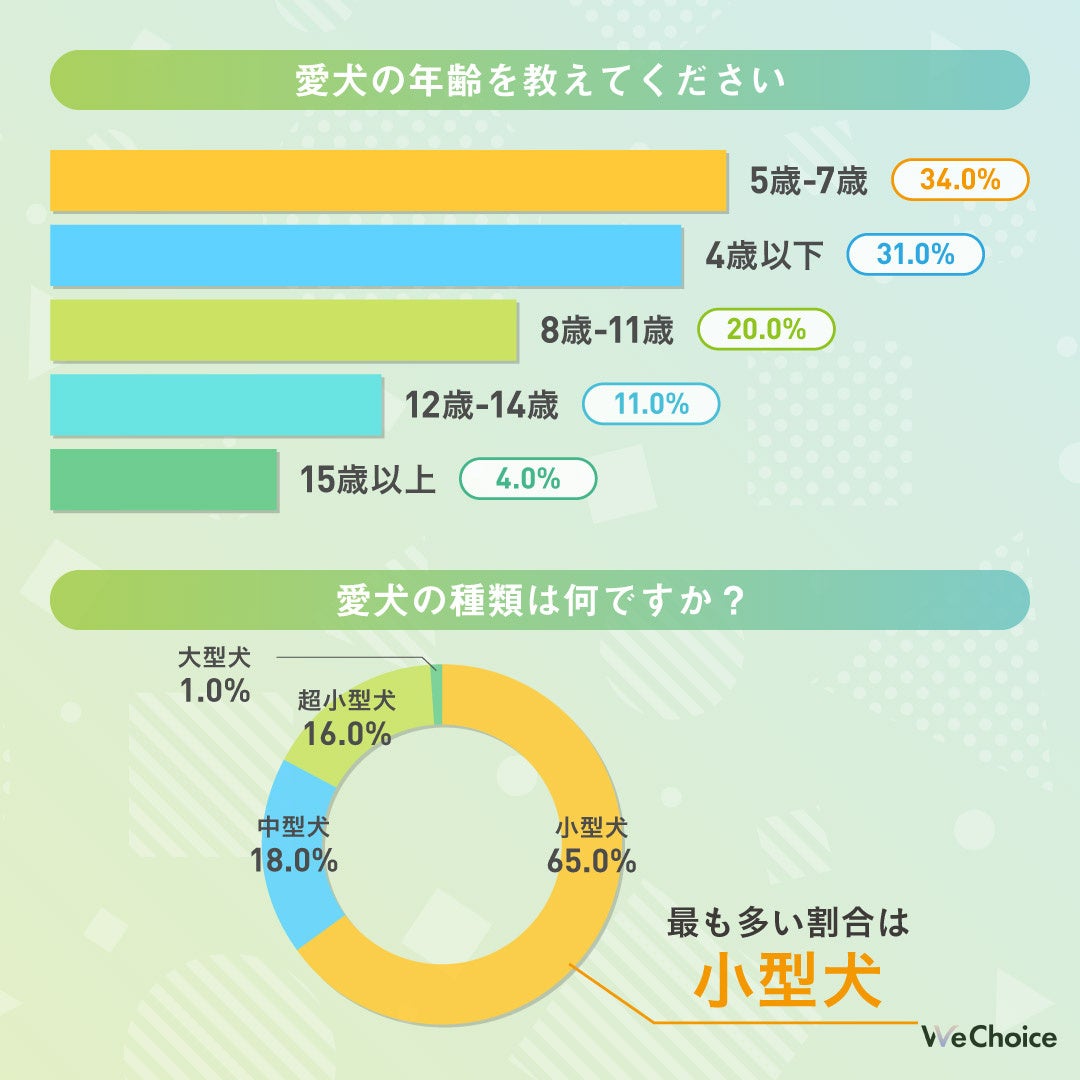 愛犬の種類としては、「小型犬」が約7割、「中型犬」「超小型犬」が共に約2割程度という結果になっています。
