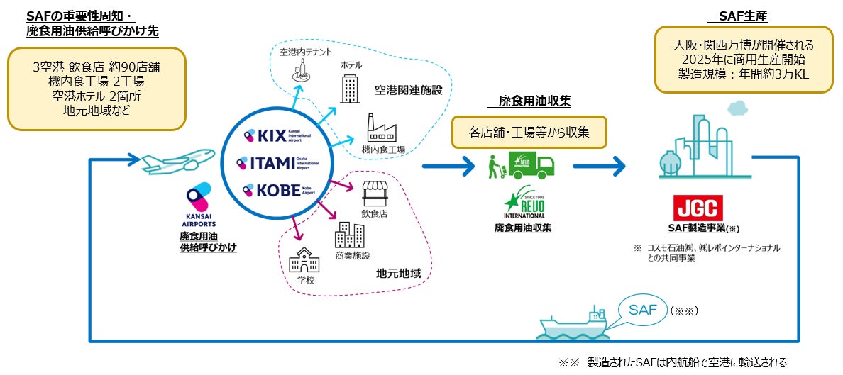 ~関西3空港からの廃食用油を原料に、2025年に国内初となるSAFの大規模商用生産を開始予定~