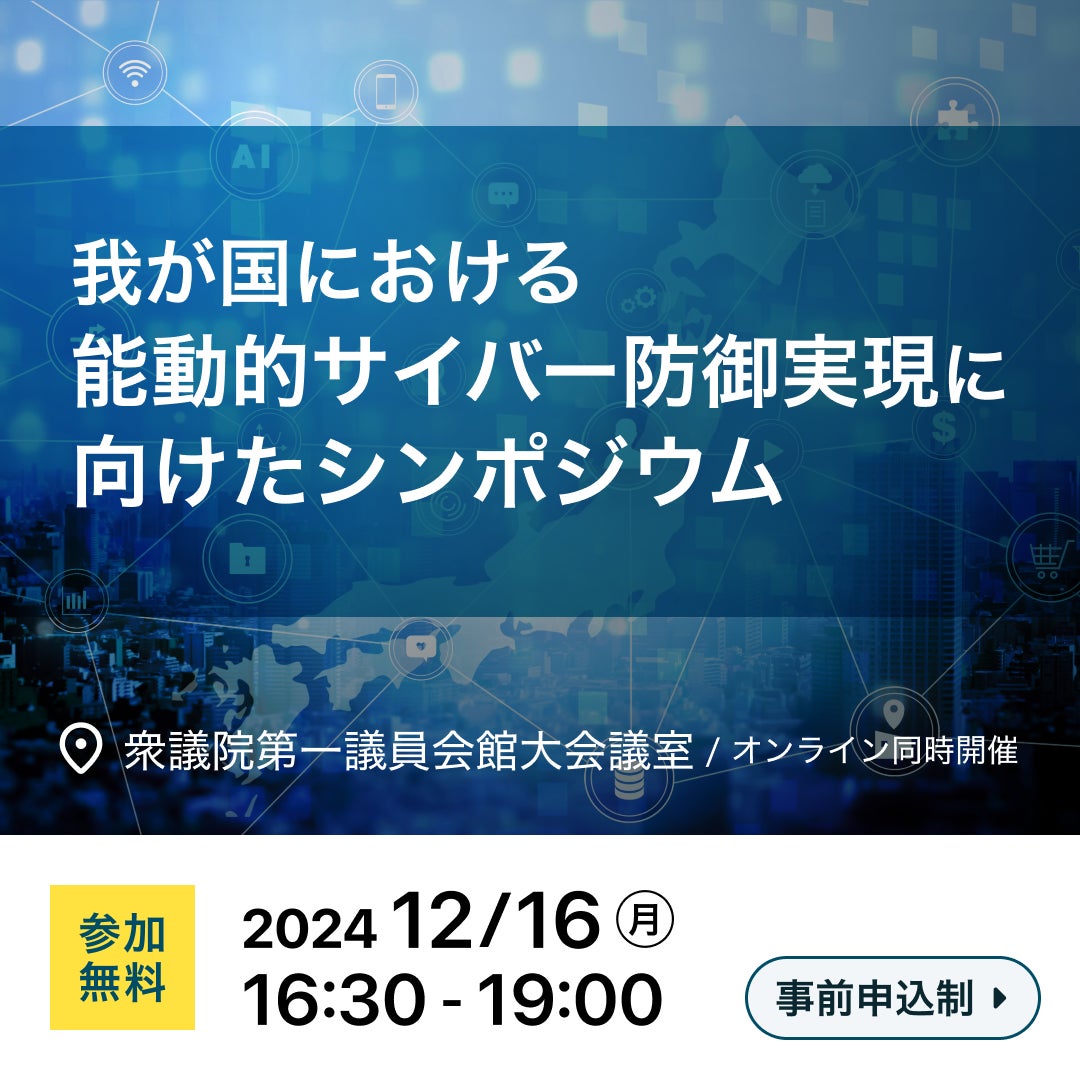 「我が国における能動的サイバー防御実現に向けたシンポジウム」開催のご案内