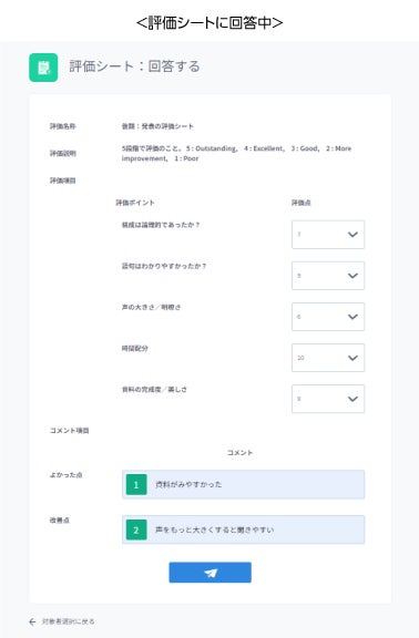 40名のクラスで英語のプレゼンテーションとその評価を行う場合、先生が発表者ごとに評価シートを配布・回収するのは面倒ですし、確認・管理の手間もかかります。学習管理システム経由でクラス全員分の40画面を開き、評価内容を一人ひとりチェックするのも同様でしょう。