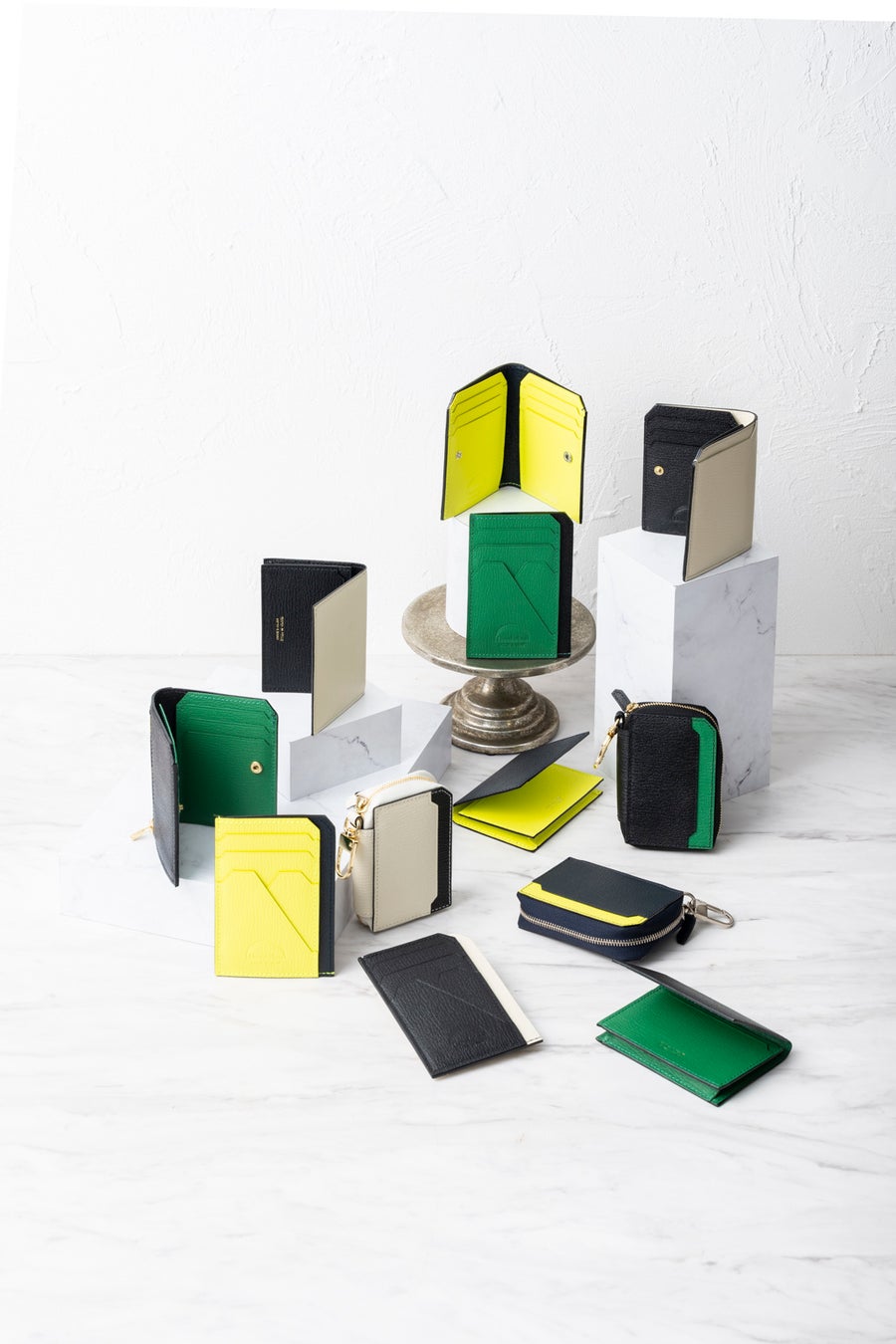 スリム設計ながら7枚のカードが収納できる点が人気の「スマートカードウォレット」、スマートキーだけでなくご自宅用のカギやカードなども収納することができる「スマートWキーケース」、必要最低限のものを収納できるラルコバレーノ最薄モデル「スマートミニウォレット」、3つのフリーポケットを装備したボックス型の「名刺入れ」が登場します。