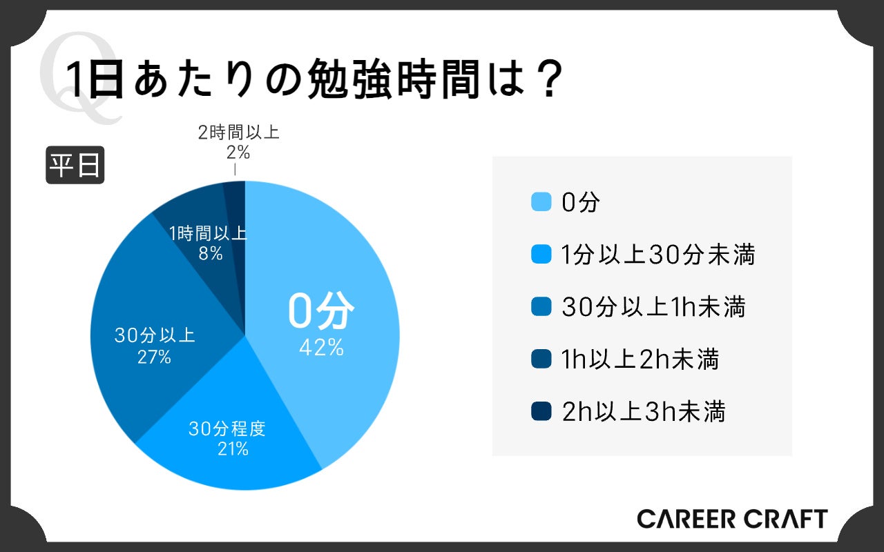 社会人はまとまった時間が取りにくいので、スキマ時間を活用して勉強するのがおすすめです!キャリアクラフトでは本調査の詳しい結果を公開中です。フルタイムで働く社会人のリアルな勉強の実態をご紹介します!