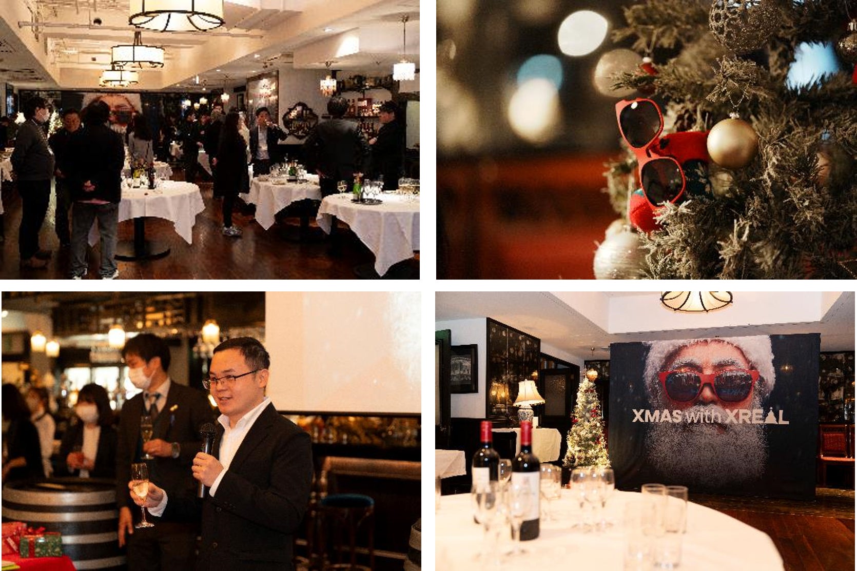 クリスマス仕様に演出された会場では、食事と特製ケーキを囲んで大変素敵な会となりました。プレゼンテーションセクションでは、日本Xrealの倉本豊和(Chanel Sales Manager)より、「2023年Q3に世界のARメガネ市場で50%以上のシェアを獲得し、日本では前年比90%以上の成長の達成」などの歩みを説明いたしました。また、同じく、高天夫(日本Xreal Product Manager)からは、「近視ユーザーに対してダイヤル式を採用せず、インサートレンズを作成することへのこだわり(ユーザーにとってより良い方法であること)と2024年1月にCESへの参加に関して」発表をいたしました。