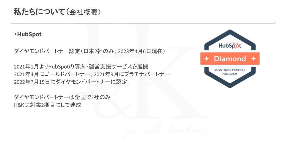 【株式会社H&K】14万3000社以上が利用するMAツール「HubSpot」の国内最高位ダイヤモンドパートナーへ昇格