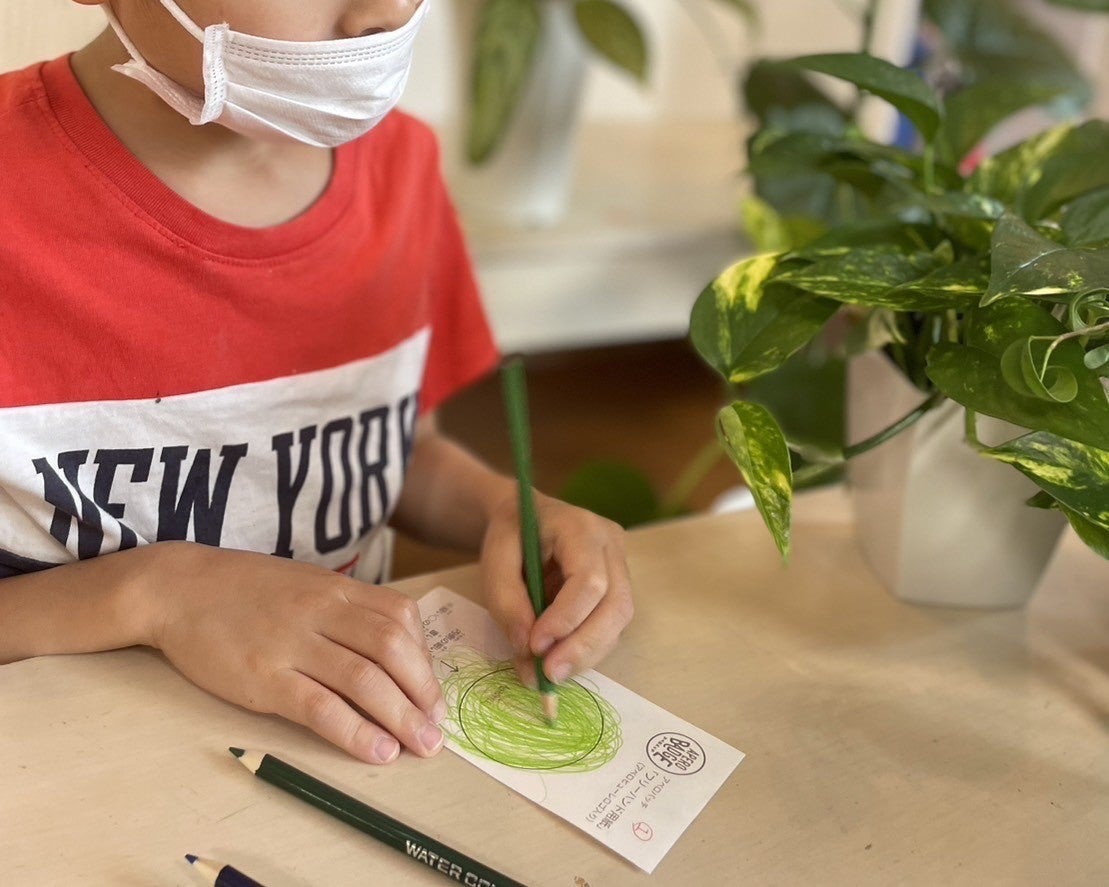 植物や生き物のイラストに自由に色を塗ったり絵を描いたりして、オリジナルの缶バッジを作れます。
