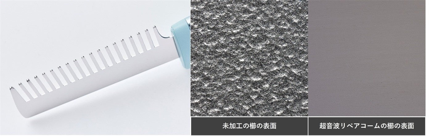 コームの歯から直接超音波が発せられることで、髪の隅々まで均一に成分が届きます。