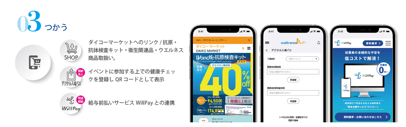 株式会社ダイコーホールディングスグループ(東京都中央区、代表取締役 神⻑ ⼤)は、2021年5月より体調管理機能、イベント時にご活用いただける体調事前申告システムなどを搭載したWEBアプリ「ウエルネスくん」を開発し、サービスご提供しております。