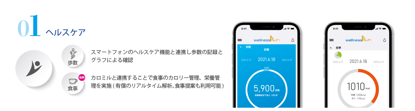 カロミルと連携することで食事のカロリー管理、栄養管理を実施