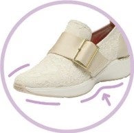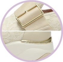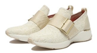 レース素材であることから、夏らしい爽やかさと女性らしさを演出、これからの夏のお出かけにピッタリなスニーカーとなっております。レースデザインはブラックとベージュの2色展開で、フォーマルからカジュアルといった様々なシーンにおすすめです。また、レース素材に撥水加工が施されており、通勤などにも履ける1足となっております。
