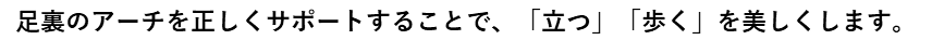 さらにインソールのアーチ形状が足裏を正しい位置に戻すことで、骨盤の角度も理想的な位置に導き美脚につながります。