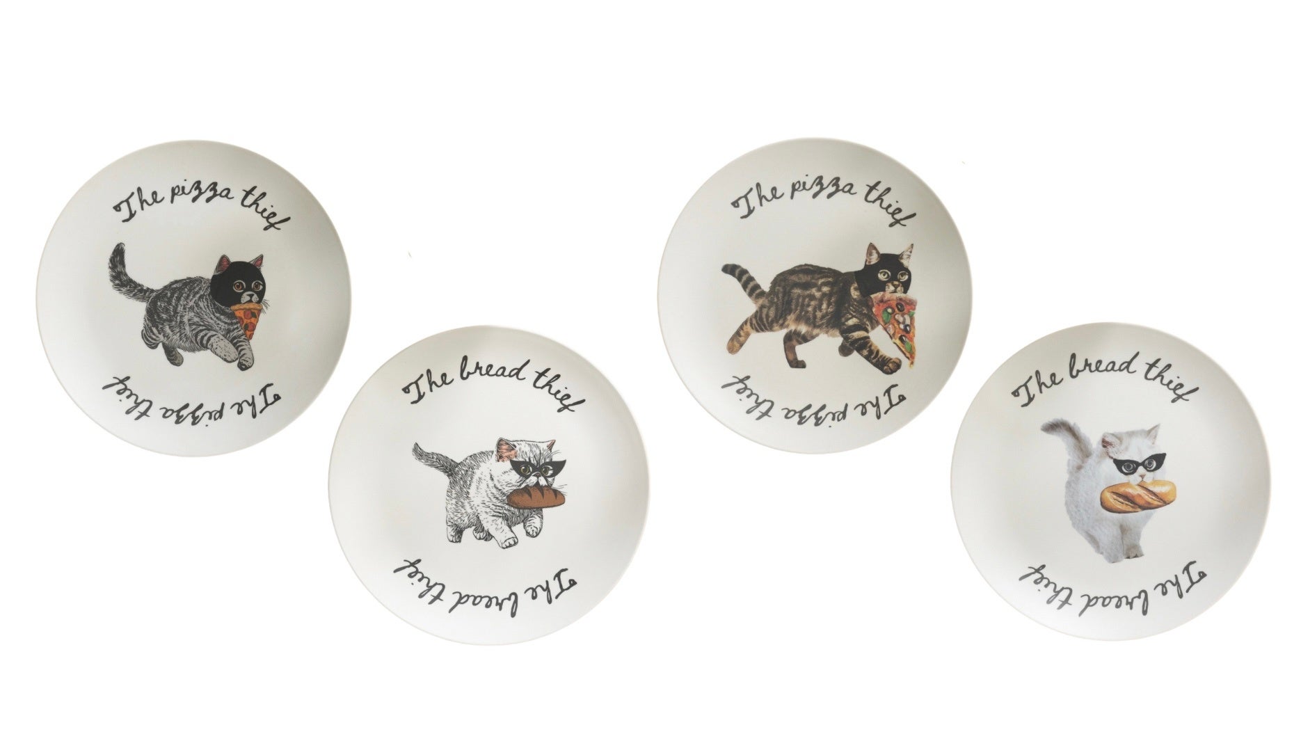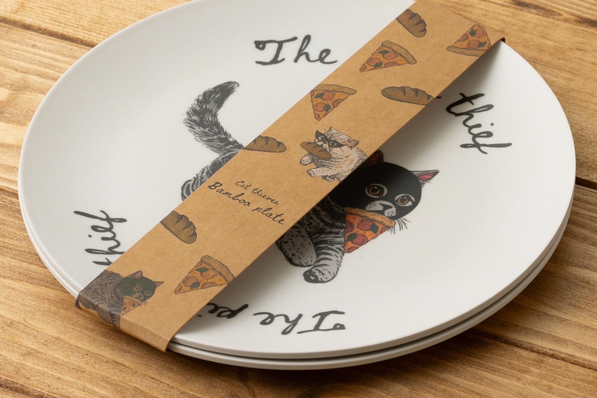 【グルメ泥棒猫にご用心】雑貨ブランド「Jubilee」から ピザやパンを盗む泥棒猫モチーフのバンブープレートが新発売