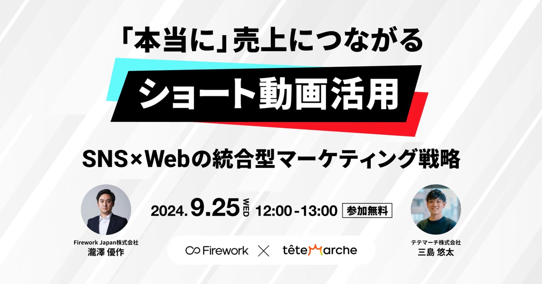 統合型動画ソリューション「Firework(ファイヤーワーク)」を提供するFirework Japan株式会社(日本本社:東京都品川区、Japan Country Manager:瀧澤優作、以下Firework)と企業向けSNSマーケティング支援を中心としたビジネス展開をするテテマーチ株式会社(本社:目黒区、代表取締役:上田 大介、以下テテマーチ)は業務提携し、企業のWEBサイト上での動画活用や課題解決を支援する新たなサービス「SNS×Web連動型ショート動画マーケティング支援」を提供開始します。