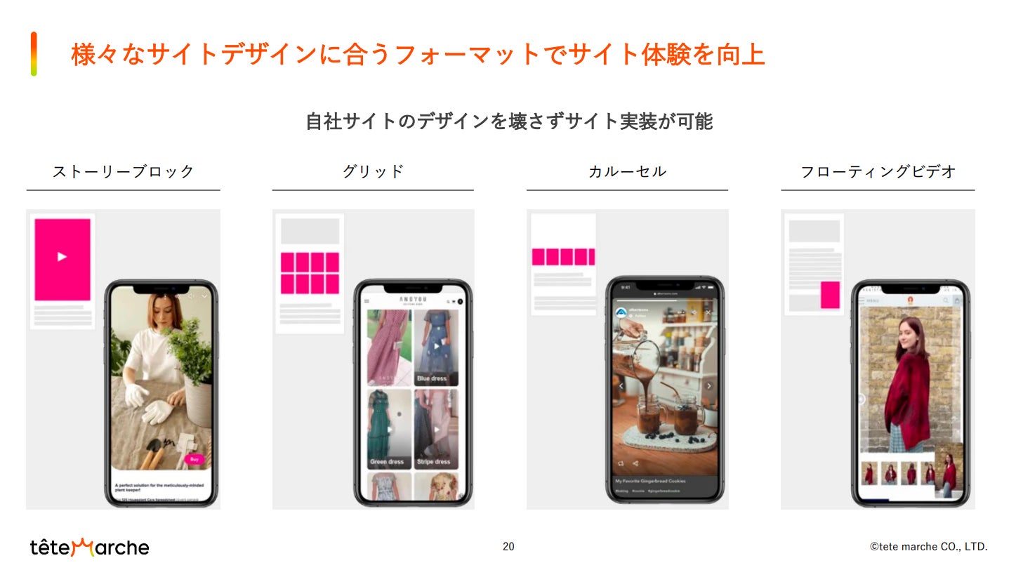 テテマーチが統合型動画ソリューション「Firework」を活用して、企業の課題やサイトデザインに合わせた最適なショート動画の掲載フォーマットをご提案し、実装までサポートいたします。