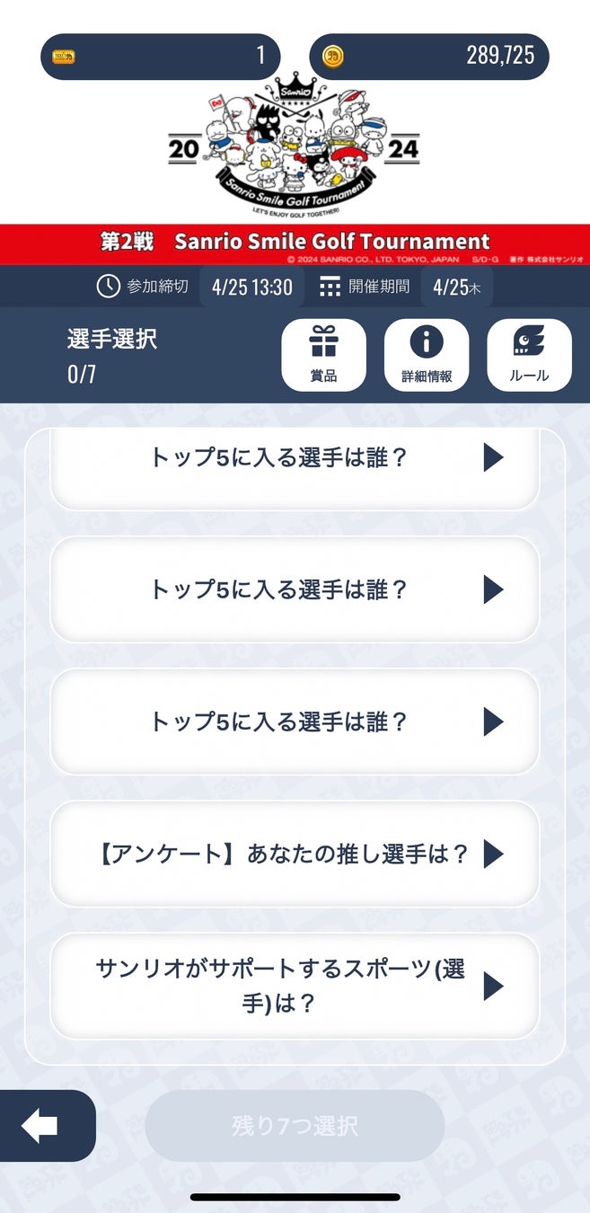大会TOP5選手&優勝選手を予想!予想成績1位には大会優勝選手のサイン入りピンフラッグにサンリオオリジナルゴルフグッズ(非売品)をプレゼント!