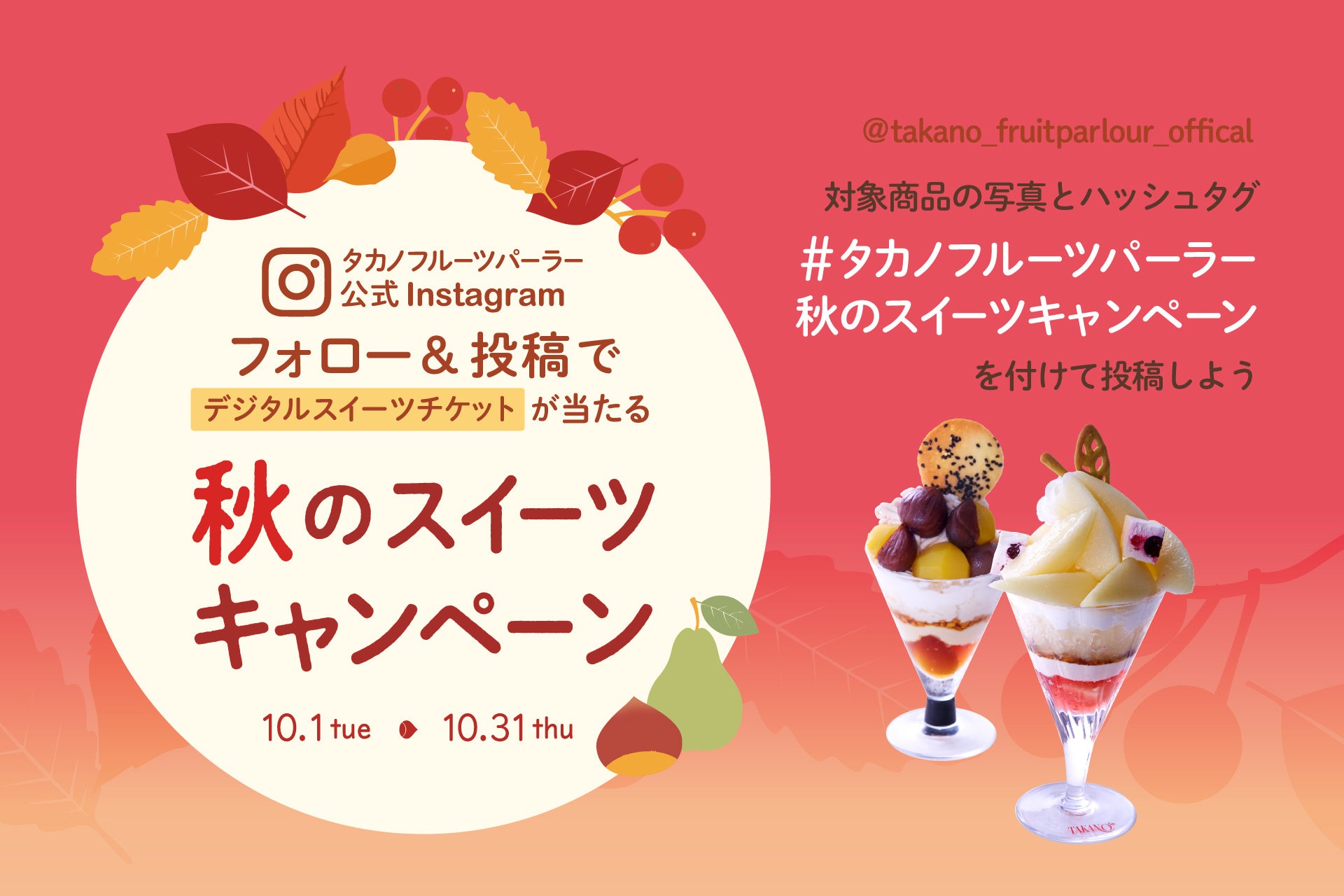 またタカノフルーツパーラー公式Instagramでは、栗や洋梨を使用した対象商品を食べて投稿すると、「デジタルスイーツチケット」が当たるキャンペーンを開催。ぜひInstagramもチェックしてみてください。