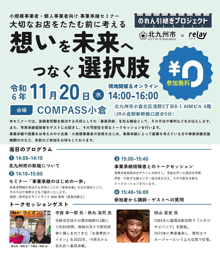 小規模事業者・個人事業者向け 北九州市事業承継セミナーを開催します!