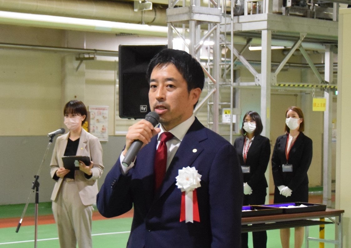 「コロナ禍の大変な中、このような前向きな設備投資をしてくださったみちのくコカ・コーラボトリング株式会社様の企業努力に心から感謝いたします。この新しい設備はお客様に喜ばれ、ご満足いただけると信じております。引き続き皆様を支えていくことが私たちビジネスの成功基盤と考えておりますので、今後とも夢に向かって一緒に歩んでいきましょう。」