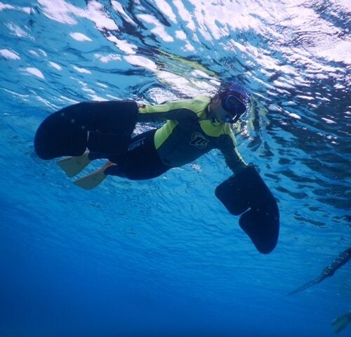 世界初の腕に装着するフィンで水中を自由に羽ばたけるマンタフライヤーシュノーケリングで岩美町の海を満喫できるここだけのマリンアクティビティ。無人ビーチ「エンジェルビーチ」で新感覚のシュノーケリングをお楽しみいただけます。ビーチまでの行き帰りはカヤックで移動し、透き通った海と洞窟からの眺めも楽しみの一つです。ガイドの丁寧なレクチャーもあり、初心者でも安心してご参加いただけます。