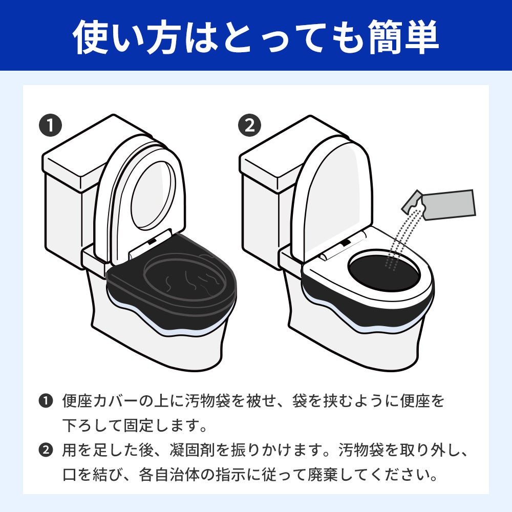 災害時の断水や停電時などでトイレが使えなくなったときに必ず役立つ、非常用簡易トイレ専用の凝固剤 です!