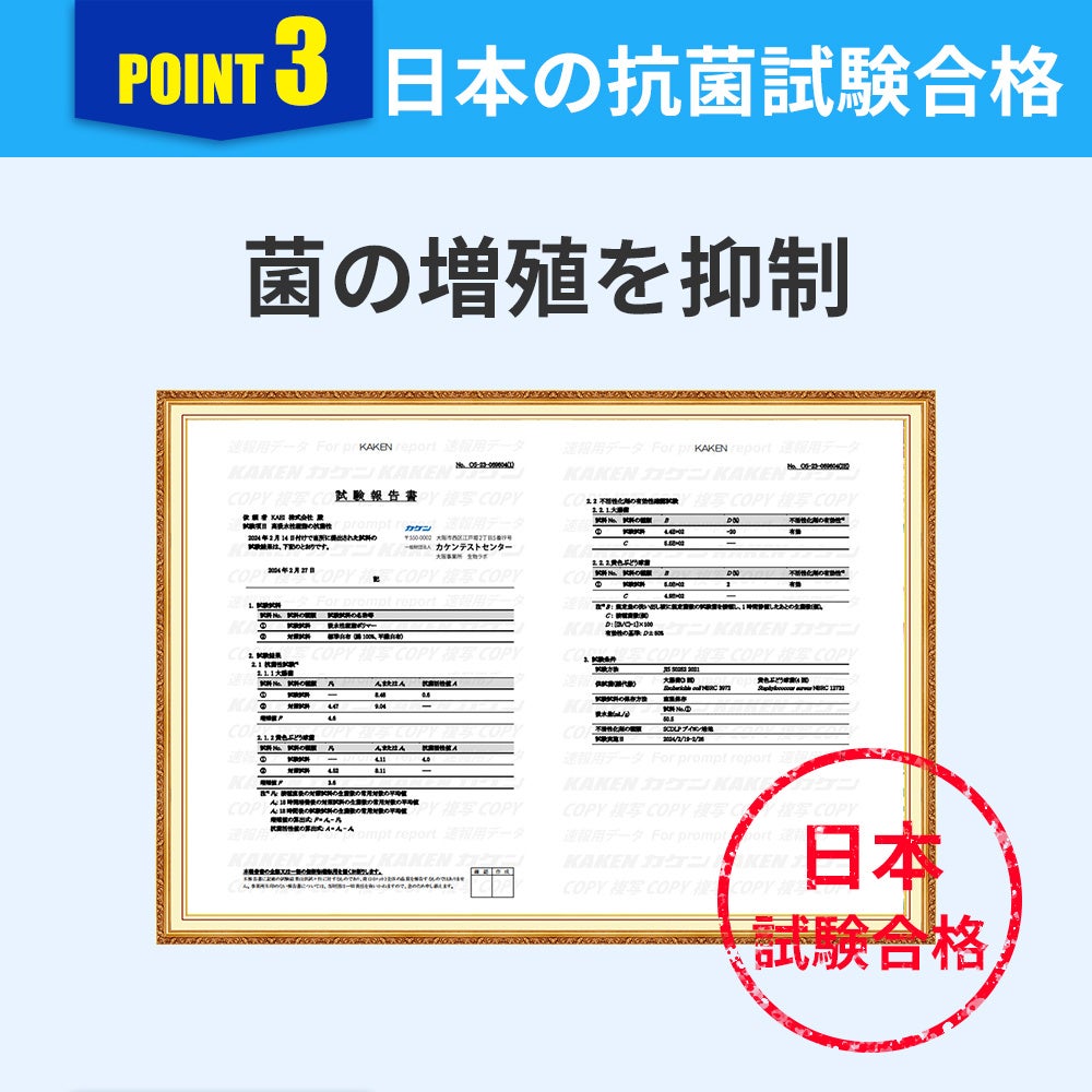 同検査機関での抗菌力試験でも、菌の増殖を抑制する効果を確認。