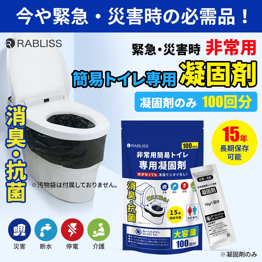 災害時のトイレ問題解決に一役!非常用簡易トイレ専用 凝固剤 100回分 新発売のお知らせ