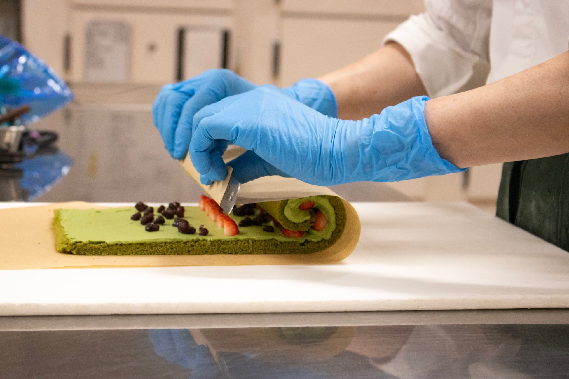 今回は、京ばあむの抹茶を使用したロールケーキを作ります。【事前予約制】