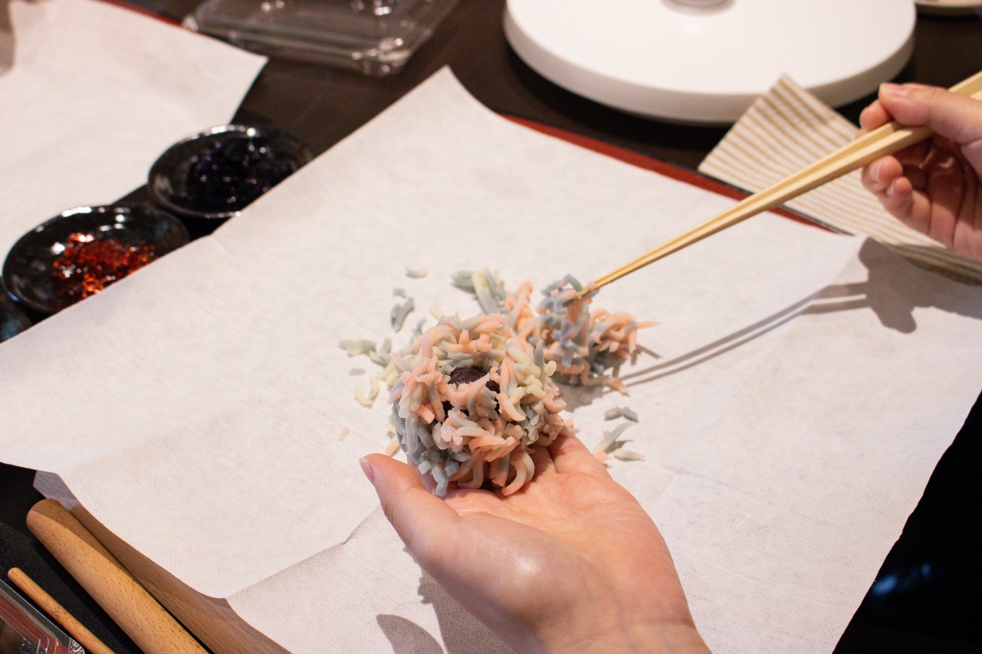 和菓子職人経験のあるばあむ職人と一緒に、3種の上生菓子(京あんばあむ他2種)を作ります。ご自身で作られた上生菓子のうち1個は点てたお抹茶と一緒にその場で楽しみ、残りの2個はお持ち帰りいただきます。【事前予約制】