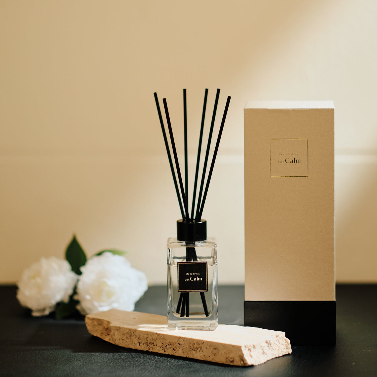 この特別な体験を自宅やオフィスでも楽しんでいただけるようにと開発されたのが『QueenswayLux Calm』のリードディフューザーです。
