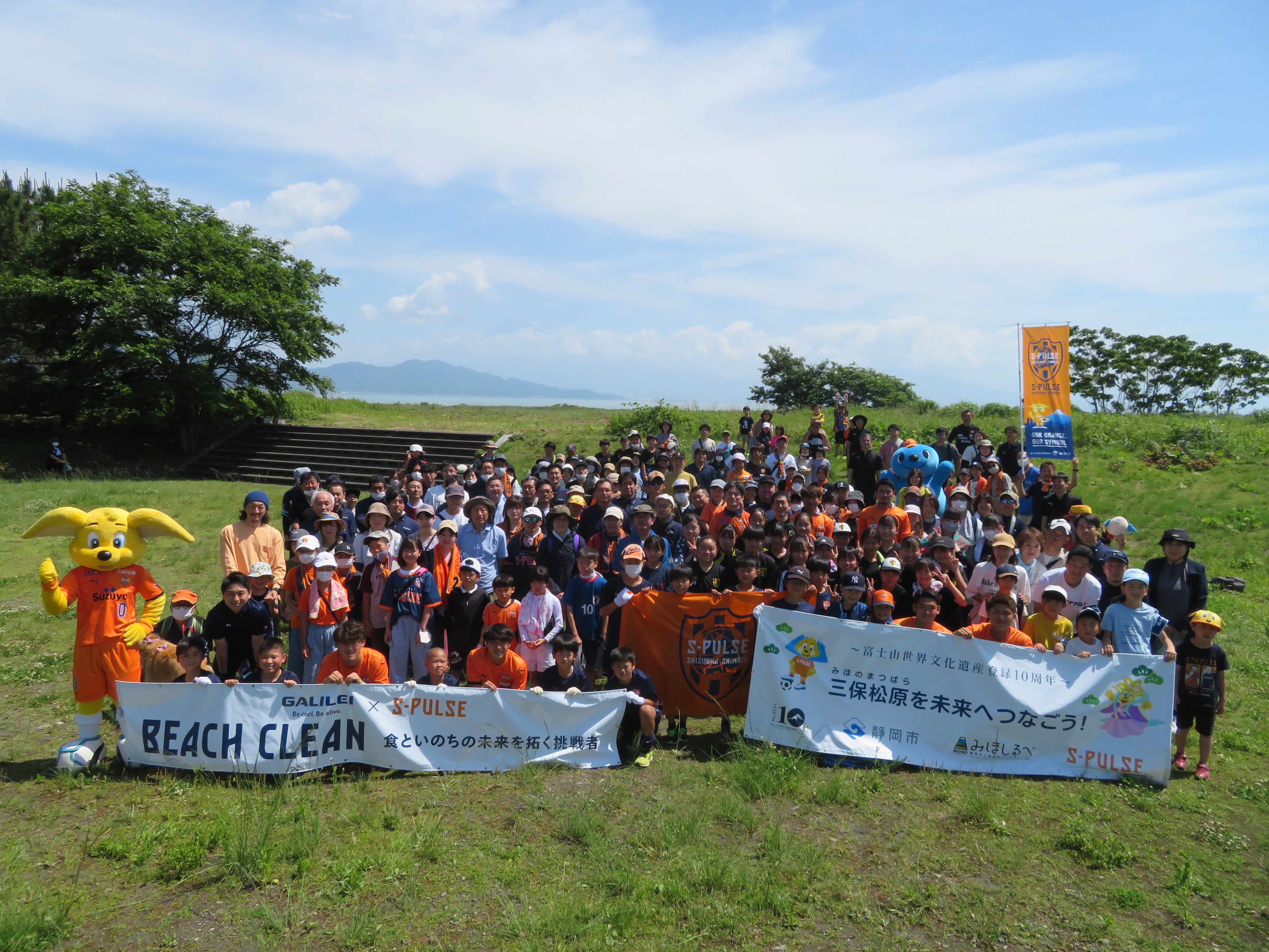 清水エスパルスと静岡市(三保松原文化創造センター みほしるべ)は、2023年6月に富士山世界文化遺産登録10周年を迎える「三保松原」の保全啓発活動を実施されています。