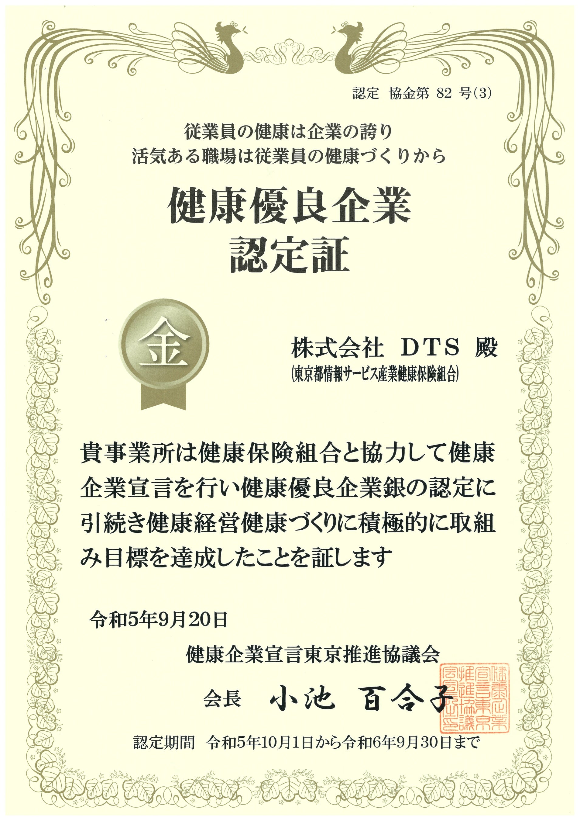 DTSは2019年に「健康企業宣言 Step2」を宣言、2020年に認定基準をクリアし「金の認定」を取得しました。「金の認定」取得以降も健康増進活動の一層の促進に取り組み、4年連続での「金の認定」更新となります。
