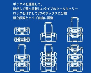 シーンや用途に合わせてツールボックスとバッグを組合せ・追加することができます。