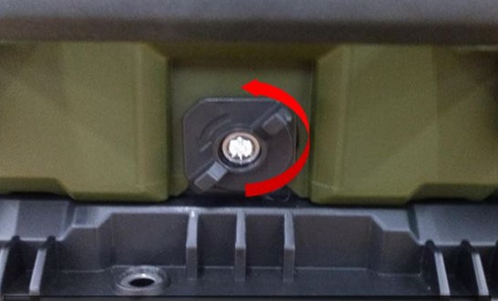 キャリーとボックスの取付け・取外しは、つまみを左に回した状態で上へ引き上げるだけの簡単操作です。個別の運搬をしたい時やボックスの入れ替えを効率的に行えます。