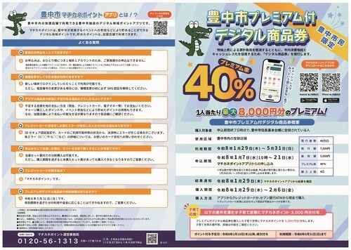 豊中市では、物価上昇による家計負担の軽減と市内消費の促進を目的として、「マチカネポイントアプリ」を通じてプレミアム率40%のデジタル商品券を発行します。