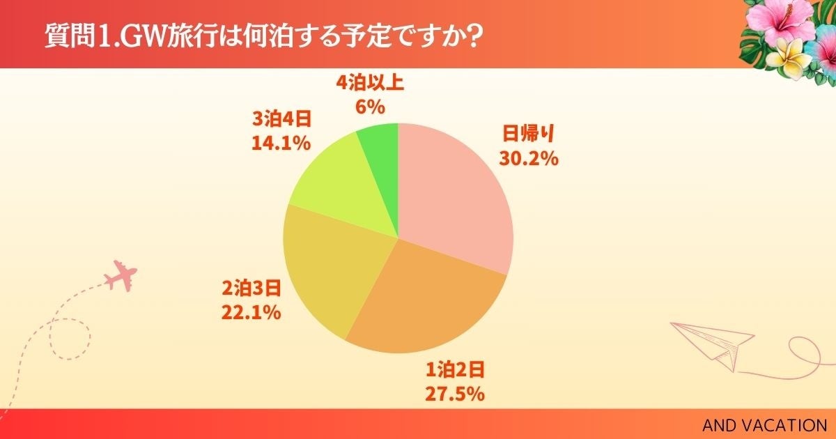 そこで、GW旅行で何泊をするのかアンケートで聞き取り調査をしました。ぜひ、チェックしてみてください!