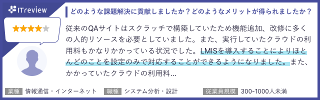 コメントの詳細はこちら:https://www.itreview.jp/products/lmis/reviews