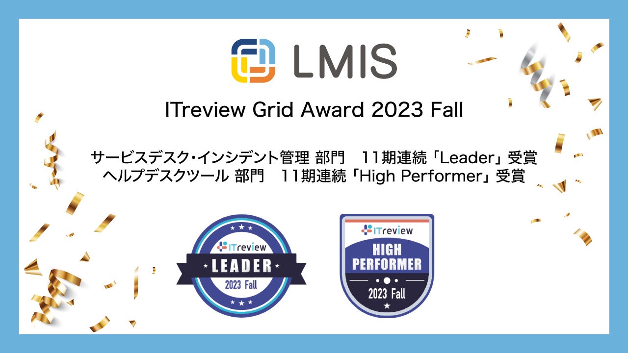 サービスマネジメントプラットフォーム「LMIS」「ITreview Grid Award 2023 Fall」にて最高位「Leader」を11期連続受賞