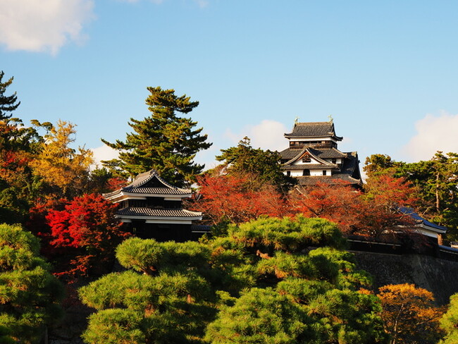 NHK連続テレビ小説「ばけばけ」の舞台となった松江市、松江城の紅葉は例年11月中旬から下旬にかけて見頃を迎え、国宝の天守と紅葉のコントラストが楽しめます。特に「もみじ谷」は紅葉の名所として知られ、お堀を巡る遊覧船から眺めるのもおすすめです。
