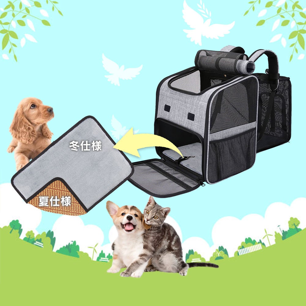 外の様子がわかるメッシュ窓で通気性バツグン、季節に合わせたリバーシブルマットでペットのストレスを軽減