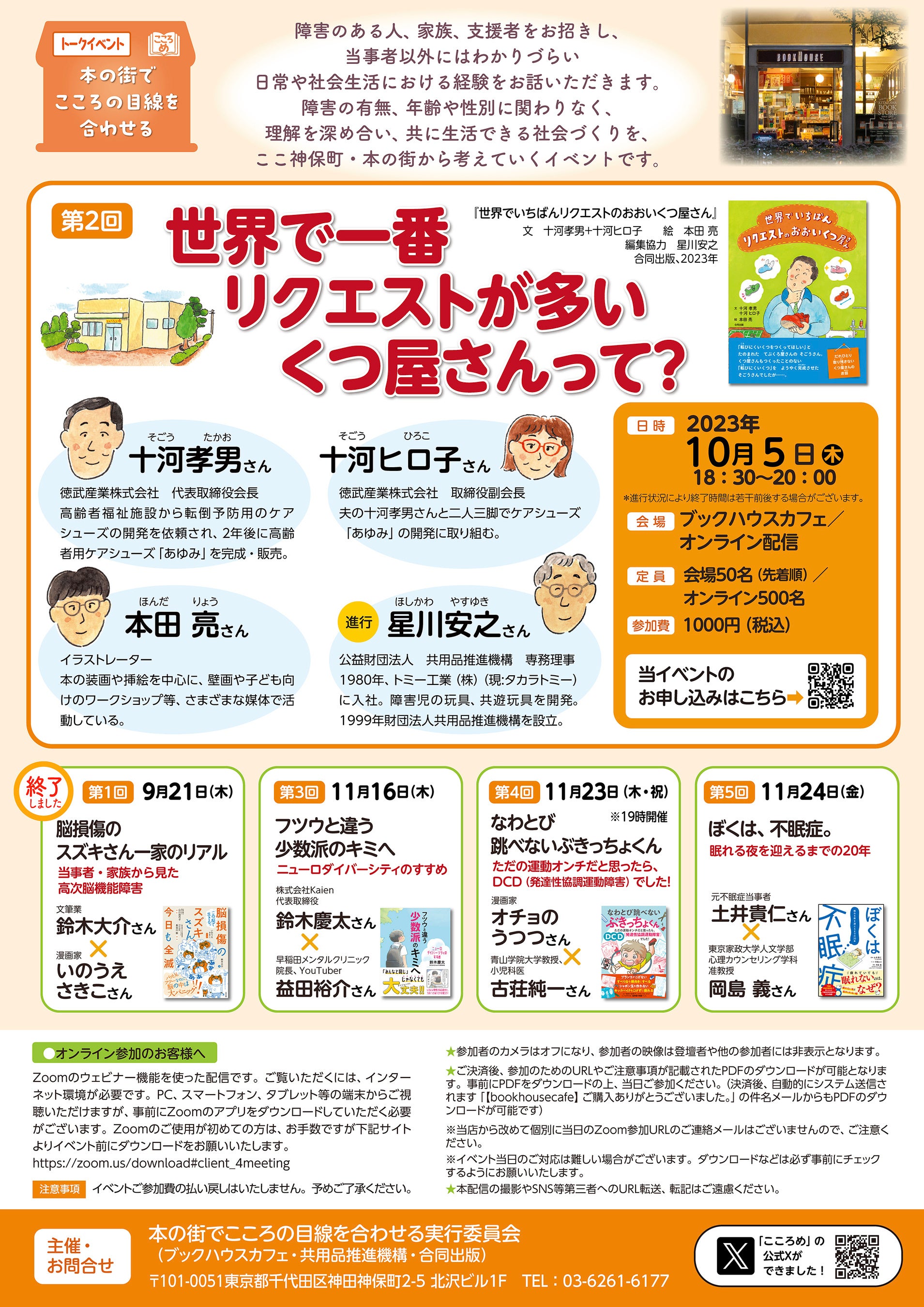トークイベント“本の街でこころの目線を合わせる”は、障害の有無、年齢や性別に関わりなく共に生活できる社会づくりを、本の街 神保町から考えていく目的で、公益財団法人共用品推進機構と合同出版株式会社が共催で2020年からはじまりました。