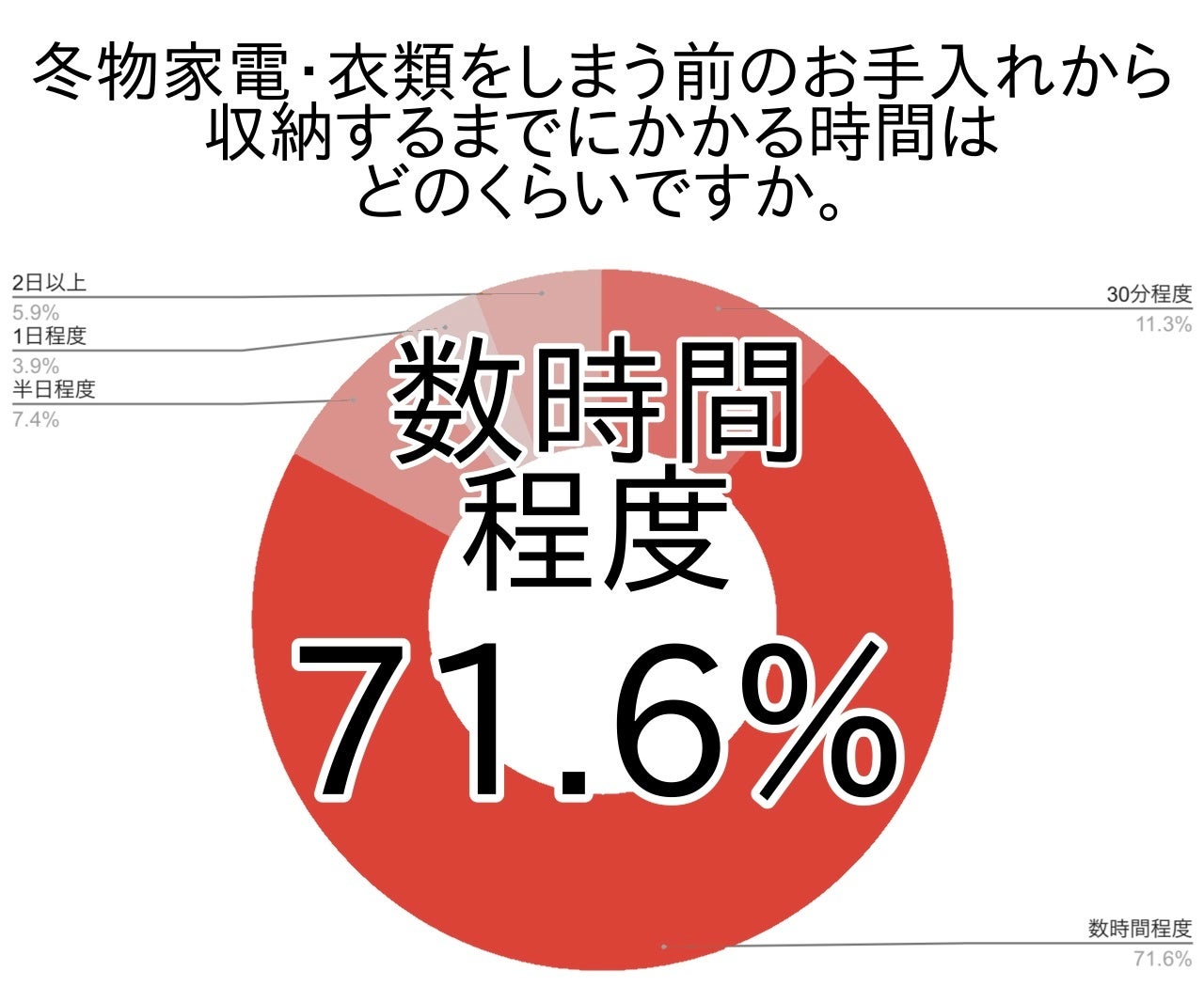 やはり、冬物家電・衣類の収納は、数時間・それ以上の時間を取って作業をする、家事の中でも大掛かりな作業であると言えそうです。