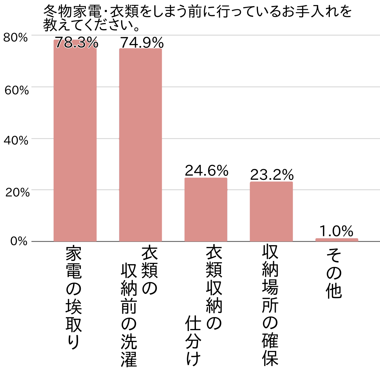 アンケートでは次に、冬物家電・衣類をしまう前にどのようなお手入れをしているかを具体的に尋ねてみました。