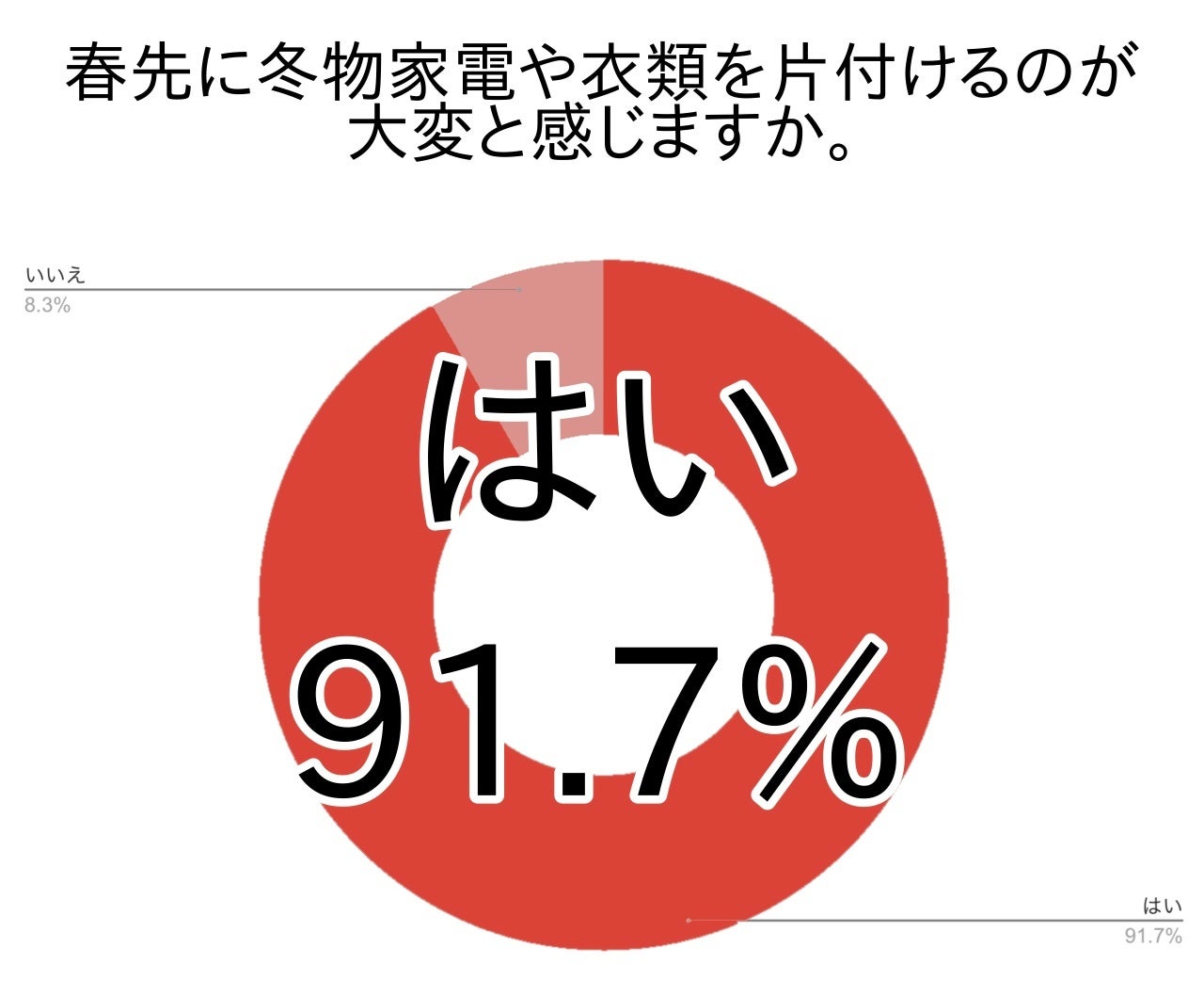 アンケートでははじめに、春先に冬物家電や衣類を片付けるのが大変と感じるか尋ねました。